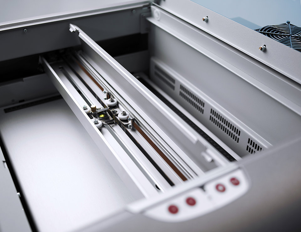 Rayjet efectúa la rotulación con láser sin contacto alguno. Así se evita cualquier desgaste mecánico en la grabadora láser, lo que asegura una larga vida útil del aparato. Solo necesitará limpiar regularmente la lente de enfoque de Rayjet. No hace falta ningún otro mantenimiento en la máquina de grabado por láser.